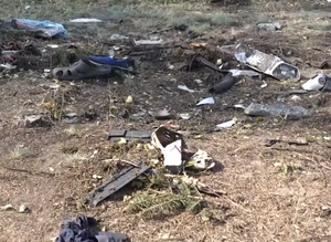 I haven't seen any obvious weapon casing or parts in the footage of the debris so far. There is a tarpaulin in the crater in some footage. --Diagonal (talk) 19:09, 15 October 2025 (UTC)