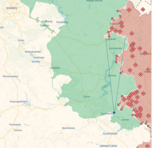 Kupiansk lies to 73km to the north of Yarova. (say 70km to Kupiansk-Vuzlovyi) - bearing roughly 005degrees from Yarova (Yarovaya)